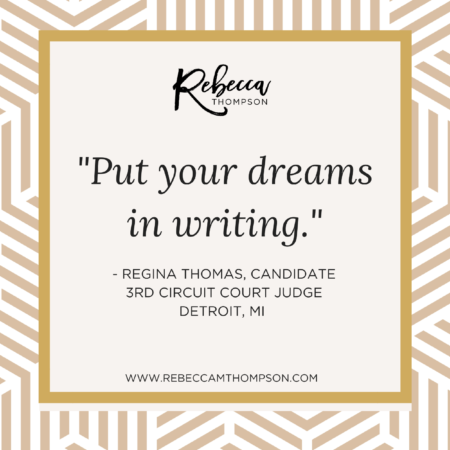 This week’s featured guest is Regina Thomas, a candidate for 3rd Circuit Judge from Detroit, MI. An accomplished wife, mother, and lawyer, Regina made it through a crowded primary with 21 candidates and is on the November 2016 ballot vying for 1 of 4 seats on the 3rd Circuit Court. In this week’s episode of Changing the Face of Power, Regina shares her journey as a first time candidate fighting to be the voice for justice in her community.